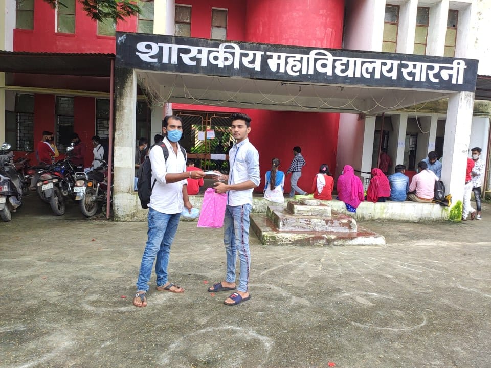 सारनी। अखिल भारतीय विद्यार्थी परिषद द्वारा महाविद्यालय में वेरिफिकेशन कराने आये बिना मास्क विद्यार्थियों को निःशुल्क मास्क वितरित किये गए। प्राप्त जानकारी के अनुसार शासकीय महाविद्यालय बगडोना में नये सत्र को लेकर एडमिशन चालू हैं, जिसके लिए अब वेरिफिकेशन का कार्य महाविद्यालय में चल रहा हैं। परंतु कोरोना महामारी के दौरान सभी वेरिफिकेशन कराने वाले विद्यार्थियों को मास्क लगाकर ही प्रवेश दिया जा रहा हैं। परंतु ऐसे कई विद्यार्थी महाविद्यालय पहुँचे जो बिना मास्क के थे। जिन्हें देखते हुए अखिल भारतीय विद्यार्थी परिषद के आकाश सिन्हा ने निःशुल्क मास्क वितरित किया। इस दौरान आकाश सिन्हा ने सभी विद्यार्थियों को कहा कि वे वेरिफिकेशन के दौरान सर्तकता जरूर बरतें वे सोशल डिस्टेंसिंग का पालन और बिना मास्क ना घुमे।