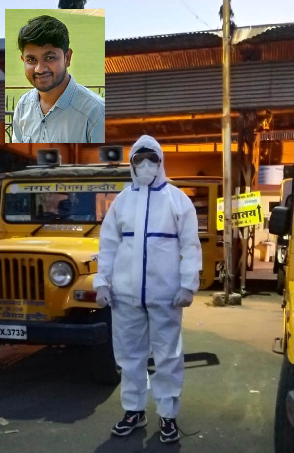 इंदौर में कोरोना संक्रमण के बीच लोगो को जागरूक कर रहे आशीष