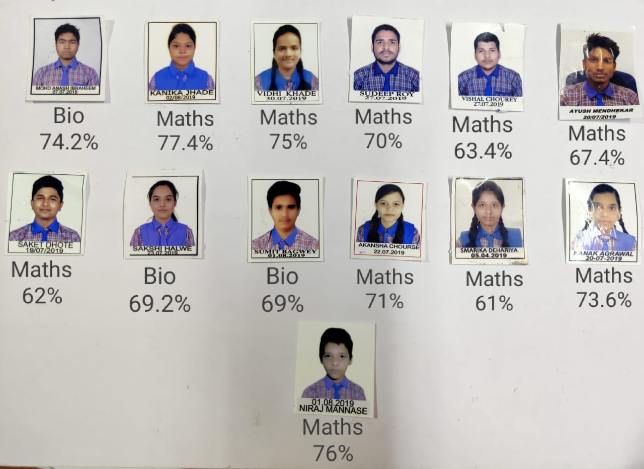 सारनी। 27 जुलाई को माध्यमिक शिक्षा मंडल ने कक्षा बारहवीं का परीक्षा परिणाम घोषित किया। जिसमें एसडीएम उच्चतर माध्यमिक विद्यालय शोभापुर कॉलोनी से कक्षा बारहवीं के सभी संकाय से गणित, जीव विज्ञान, वाणिज्य एवं कला से छात्र एवं छात्राएं सम्मिलित हुए थे। गणित संकाय से प्रीतम नागले ने प्रथम स्थान प्राप्त किया, इन्होंने 500 मे से 417 अंक प्राप्त किये। वहीं शिखर देशमुख ने 500 में से 400 अंक प्राप्त करके दूसरा स्थान प्राप्त किया। कनिका झाड़े 500 मे से 387 अंक प्राप्त करके 77.4 बना कर तीसरे स्थान प्राप्त किया। जीव विज्ञान संकाय से श्रेयस श्रीवास्तव पिता प्रदीप कुमार श्रीवास्तव 500 में से 422 अंक प्राप्त करके 84.4 प्रतिशत अंक प्राप्त किया। वाणिज्य संकाय से पीयूष सिंह प्रथम स्थान एवं रिचा अरमा कला संकाय से प्रथम स्थान प्राप्त किया। संस्था प्राचार्य अशोक कुमार सिंह,  उपप्राचार्य मकसूद कुरेशी एवं वरिष्ट शिक्षक एवं शिक्षिका मनोज कुमार सिंह, रामबाबू कश्यप, उमेश श्रीवास्तव, निर्मला मोहन्ती, फ़ैयाज़ अंसारी ने छात्र एवं छात्राओ एवं अभिभावको को शुभकामनाएं प्रदान कर उनके उज्ज्वल भविष्य की कामना की।