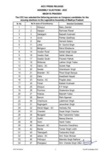 मध्य प्रदेश में कांग्रेस ने जारी की पहली लिस्ट