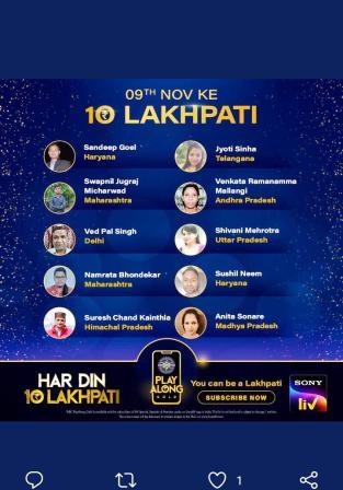 - 9 नवम्बर के एपिसोड के 10 लखपति में शामिल हुई अनिता