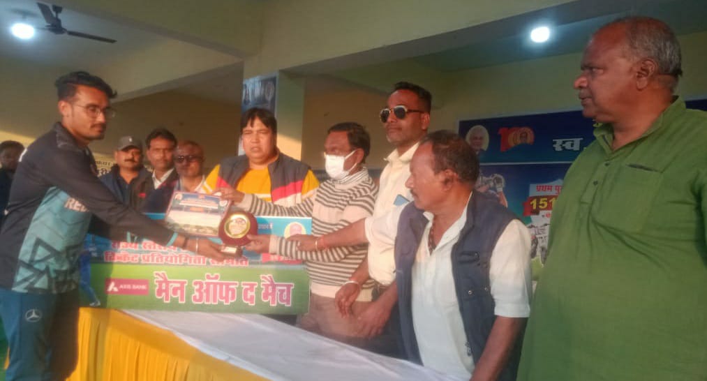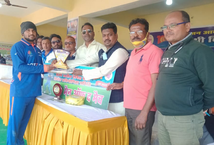 - नपा सी एम ओ सी के मेश्राम द्वारा खिलाड़ियों का मैन आफ द मैच का पुरुस्कार प्रदान किये