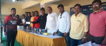 सारनी। कुशाभाऊ ठाकरे जन शताब्दी वर्ष के उपलक्ष पर जन आदर्श स्पोर्ट्स क्लब  के तत्वधान में स्वर्गीय विजय कुमार खंडेलवाल जी की स्मृति में राज्य स्तरीय टेनिस बॉल क्रिकेट प्रतियोगिता के