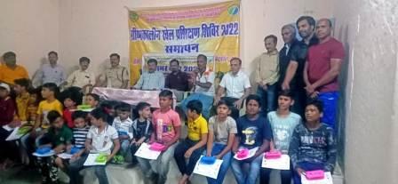 आमला। मध्य प्रदेश शासन खेल और युवा कल्याण विभाग द्वारा आयोजित 21 मई से 21 जून समर कैंप आमला का खेल कौशल मैं पारंगत हुए खिलाड़ियों के कोशल प्रदर्शन के साथ समापन कार्यक्रम प्रारंभ हुआ बतौर मुख्य अतिथि राजेश बुनकर आरपीएफ थाना प्रभारी विशेष अथिति शिवराम सिंह एसआई आरपीएफ, मनोज बाघवा, आनंद धोते रेल्वे की उपस्थिति मैं रामनारायण शुक्ला ब्लॉक खेल समन्वयक आमला के संचालन में पुलिस अधीक्षक बैतूल के मार्गदर्शन में जिला खेल और युवा कल्याण अधिकारी के निर्देशन में 21 जून को शाम 5 बजे रेल्वे एस्टीट्यूट मैदान पर सम्पन्न हुआ। यह कैंप कराते प्रशिक्षक सुरेश सागर, एथलेटिक प्रशिक्षक सुनील सोनपुरे, हरि भाऊ झारबड़े के कुशल प्रशिक्षण दिया गया। तीस दिवसीय प्रशिक्षण शिविर में बाघवा फ्रेंड्स ग्रुप अनिल सोनी, पप्पू ठाकुर, राजीव मदान, खेमचंद मदान राजीव उपाध्याय मनोज, बबलू भैया के द्वारा सभी उपस्थित खिलाड़ियों को प्रोटीन युक्त भोजन करने हेतु 100 लंच बॉक्स प्रदान किया गया जिसे पाकर खिलाड़ियों चेहरे पर मुस्कान गई।