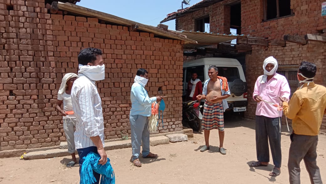 सारनी। ग्राम पंचायत कोलगांव के अंतगर्त आने वाली पंचायत द्वारा जाजबोडी ग्राम के सभी ग्रामीणों को मास्क वितरित कर कोरोना वायरस से बचाव हेतु आवश्यक दिशा निर्देश दिए गये। प्राप्त जानकारी अनुसार इस दौरान सारनी ग्रामीण मंडल अध्यक्ष मोहन मोरे, ग्राम पंचायत सरपंच, शिवदयाल उईके, ग्राम पंचायत सचिव लक्ष्मी नारायण, सहायक सचिव यशवंत की उपस्थिति में सभी ग्रामीणों को मास्क वितरित किया गया। मास्क वितरित करते हुए ग्रामीण मंडल अध्यक्ष मोहन मोरे सहित सभी ने ग्रामवासियों को कोरोना वायरस से बचाव के लिये आवश्यक दिशा निर्देश दिए। और बताया कि आप सभी को अनावश्यक रूप से घर से बाहर नहीं निकलना है, अगर जरूरी अगर काम आता भी है तो मुँह पर मास्क को लगाकर ही निकले और साथ में सैनिटाइजर अपने हाथ को भी धुले। अगर किसी भी प्रकार की कुछ भी बीमारी होती है तो घरेलू उपचार ना करें, तत्काल डॉक्टर या फिर प्राथमिक स्वास्थ्य केंद्र में दिखावे।