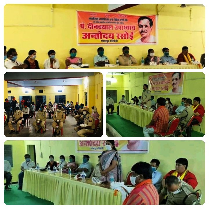 सारनी। शोभापुर कॉलोनी में आज विवेक वाणी संघ प्रांगण में संचालित हो रही पंडित दीनदयाल अंत्योदय रसोई योजना के समापन के अवसर पर उपस्थित घोड़ाडोंगरी तहसीलदार पुलिस अनुविभागीय अधिकारी सारणी नगर पालिका सीएमओ सारणी बीएमओ घोड़ाडोंगरी परियोजना अधिकारी शोभापुर पत्रकार बंधु सारणी स्वास्थ्य कर्मी सारणी पुलिस विभाग सारणी एवं सफाई कर्मी जो कि इस कारोना में वीर योद्धा के रूप में अपनी सेवाएं दे रहे हैं ऐसे सभी वीर योद्धाओं का पंडित दीनदयाल अंत्योदय रसोई योजना के सभी सदस्यों ने पुष्प वर्षा कर एवं शाल श्रीफल देकर सम्मानित किया समिति के संरक्षक रंजीत सिंह एवं सुधा चंद्रन ने कहा वर्तमान परिस्थितियों में आज निस्वार्थ भाव से जो लोग आज देश सेवा में लगे हैं सभी धन्यवाद के पात्र हैं भारत देश इनके त्याग और सेवा का हमेशा ऋणी रहेगा। इस कार्य में सहयोगी के रूप में व्यापारी संघ के अध्यक्ष रमेश हारोड़े प्रकाश शिवहरे समीर मशीद वीरेंद्र सोलंकी जोगेंद्र सूर्यवंशी सतीश चौरे देवेंद्र सोनी रविंद्र पांसे मिश्री लाल सोनी मुकेश सोनारे जगदीश पवार अशोक पवार अजय बग्गा दीपक चौहान पप्पू उज्जैन वार इन सभी की विशेष रूप में भूमिका रही हैऔर बहुत से ऐसे सभी सामाजिक और धार्मिक संगठन जो इस कार्य में प्रत्यक्ष या अप्रत्यक्ष रूप से सहयोगी रहे हैं समिति सभी का धन्यवाद ज्ञापित करती है ।