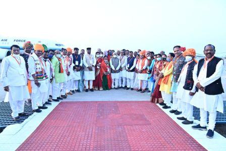 भगवान बिरसा मुंडा की जयंती पर भोपाल में आयोजित जनजातिय गौरव दिवस कार्यक्रम में शामिल होने जिले से 14 नवंबर को ही रवाना हो गए थे जहाँ विश्व के सबसे ताकतवर नेता और देश के प्रधानमंत्री नरेंद्र मोदी की झलक पाने के लिए 2 लाख से ज्यादा लोग पलक पावड़े बिछा कर रखे थे प्रधानमंत्री के पूरे दौरा कार्यक्रम के बाद दिल्ली प्रस्थान के समय राजा भोज स्टेट हेंगर में भाजपा के दिग्गज नेता उन्हें विदाई देने पहुचे थे लेकिन स्टेट हेंगर के अंदर विदाई देते समय प्रदेश के राज्यपाल मंगू भाई पटेल मुख्यमंत्री शिवराज सिंग चौहान भाजपा प्रदेश अध्यक्ष विष्णुदत्त शर्मा सहित चुनिंदा मंत्री, सांसद विधायक को ही प्रधानमंत्री के विदाई करने का सौभाग्य मिला