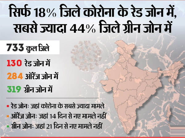 - रेड जोन यानी जहां कोरोना के मामले सबसे ज्यादा, ग्रीन जोन यानी जहां 21 दिन से नए मामले नहीं आए