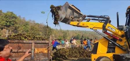 सारनी। सतपुड़ा जलाशय रूपी धरोहर को बचाने के लिए रविवार की सुबह सतपुड़ा डेम घाट पर जनसैलाब उमड़ पड़ा। जल प्रहरी मोहन नागर के आह्वान पर सैकड़ो की तादाद में लोग जुटे सतपुड़ा जलाशय स्वच्छता अभियान में शामिल हुए। तकरीबन दो दर्जन संगठन के सैकड़ों कार्यकर्ताओं ने तीन घण्टे तक श्रमदान किया। अभियान के पहले दिन 30 ट्रैक्टर ट्राली जलीय खर पतवार और चाइनीज झालर डेम से निकाला गया। इस अभियान में मछुआरा समाज के लोगों ने बढ़ चढ़कर हिस्सा लिया। मछुआरों की टोली ने महाजाल का निर्माण कर डेम से खर पतवार निकालने में महत्वपूर्ण भूमिका निभाई। श्रमदानी कार्यकर्ताओ ने मलवे को ट्रैक्टर ट्राली में भरकर सुरक्षित स्थान पर भेजने में अपना योगदान दिया।