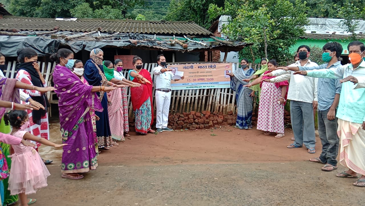 सारनी। गंदगी-भारत छोड़ो-मध्यप्रदेश अभियान दिनांक 16 अगस्त से 30 अगस्त का संचालन मुख्य नगर पालिका अधिकारी सी के मेश्राम के आदेशानुसार कार्यक्रम के नोडल अधिकारी के के भावसार के निर्देशन में वार्ड क्रमांक 02 में राखड़ मोहल्ला , विजय नगर वार्ड क्रमांक 15 अंबेडकर नगर वार्ड क्र 16 ओझा मोहल्ला में अभियान स्थानीय जन प्रतिनिधि ,सामाजिक संगठनों के सहयोग से चलाया गया कार्यक्रम के तहत वार्ड के अलग-अलग स्थानों पर भ्रमण कर चार स्थानों पर गतिविधियां की गई जिसमें स्वच्छता की शपथ के तहत् अलग- अलग ग्रुपों में 100 नागरिकों कोे स्वच्छता की शपथ सोशल डिस्टेशिंग का पालन करतें हुये दिलाई गयी तथा वार्ड में भ्रमण कर जनप्रतिनिधयों के सहयोग से व्यक्तिगत शौचालय का रखरखाव ,साफ-सफाई एवं उपयोग, खुलें में शौच न जाने, के संबंध में जनजागरूक अभियान चलाया गया। वार्ड भ्रमण कर विभिन्न स्थानों पर पाये गये कचरे के छोटे-छोटे ढेरों को उठवा कर उचित निपटान किया गया। निकाय आम नागरिकों से अपील करती है कि आइये स्वच्छ स्वस्थ और सुंदर मध्यप्रदेश बनाने के लिए अपने शहर से गंदगी दूर करने की शपथ लेते हैं। इस् लिंक पर जाइए https://forms.gle/tT3zFrX59T7Y5zv47 लिंक में संभाग भोपाल शहर सारनी को सेलेक्ट कर अधिक से अधिक शपथ लेकर ‘‘गंदगी-भारत छोड़ो-मध्यप्रदेष अभियान को सफल बनाने में सहयोग प्रदान करेे। गतिविधियों में निकाय के निराकार सागर, कामदेव सोनी, बालकराम यादव, ब्रजेष बामने, पूजा झड़बड़े संबंधित सफाई सुपरवाईजर एवं अन्य कर्मचारी शामिल रहें।