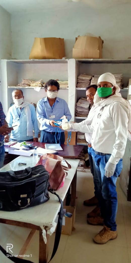 पावर इंजीनियर एंड एंप्लाइज एसोसिएशन द्वारा मास्क व सैनिटाइजर का वितरण किया