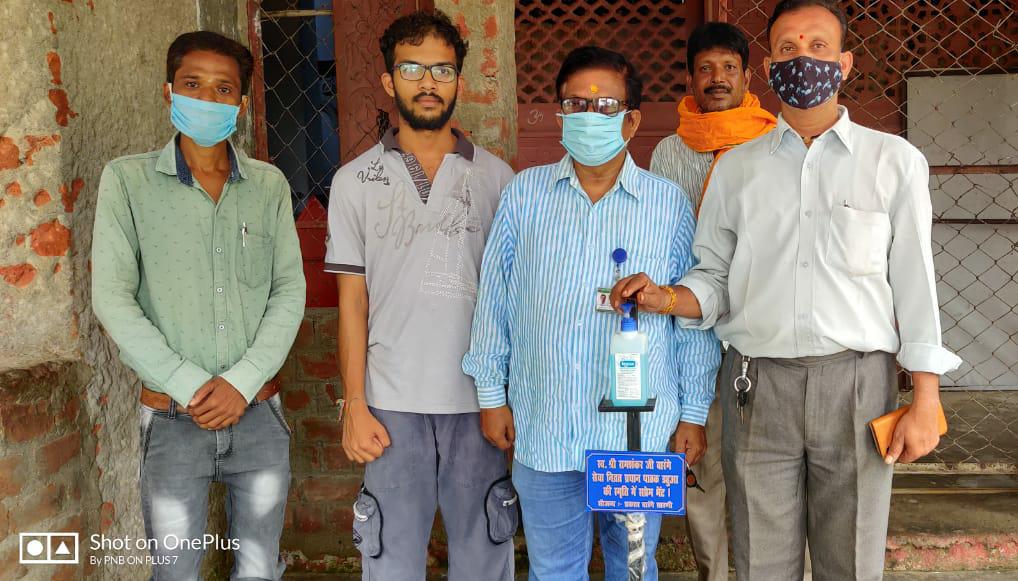 पिता की पुण्यतिथि पर नगर देवता के मंदिर में भेंट किया सैनिटाइजर स्टैंड