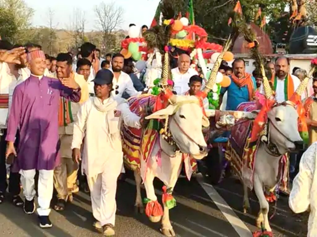 बैतूल में बैलगाड़ी पर निकले भाजपा प्रदेश अध्यक्ष
