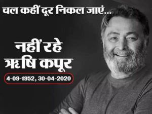 कोरोना संकट के बीच बॉलीवुड जगत ने महज दो दिन के भीतर अपने दो बड़े सितारों को खो दिया है। एक्टर इरफान खान के बाद आज दिग्गज अभिनेता ऋषि कपूर ने भी इस दुनिया को अलविदा कह दिया है। इरफान के निधन के एक दिन बाद ही मुंबई के अस्पताल में अभिनेता ऋषि कपूर ने अंतिम सांस ली। 67 वर्षीय ऋषि कपूर को खराब तबीयत के चलते बुधवार रात एचएन रिलाइंस फाउंडेशन अस्पताल में भर्ती कराया गया था। इससे एक दिन पहले ही इरफान खान का निधन हुआ था।