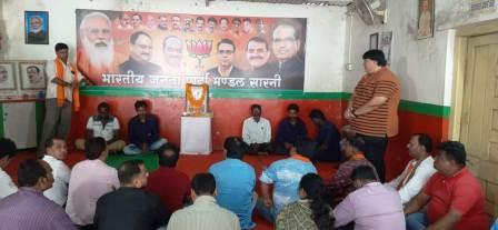 सारनी। भारतीय जनता पार्टी अनुसूचित जाति मोर्चा द्वारा बुधवार को आदि कवि महर्षि बाल्मीकि की जयंती मनाई गई। भाजपा मण्डल कार्यालय में आयोजित कार्यक्रम का शुभारंभ भाजपा जिला महामंत्री कमलेश सिंह,अजा मोर्चा के जिला अध्यक्ष किशोर महोबे, मण्डल अध्यक्ष नागेंद्र निगम,विधायक प्रतिनिधि रणजीत सिंह, अजा मोर्चा के मण्डल अध्यक्ष राजकुमार नागले ने महर्षि बाल्मीकि के छाया चित्र पर माल्यार्पण एवं दीप प्रज्वल्लन कर किया।