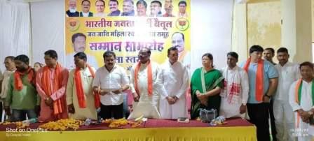 प्रत्येक समूह के महिला अध्यक्षों से संवाद कर पूछा की आप लोग समूह कैसे चलाते हैं समूह से क्या-क्या फायदा होता है और भाजपा सरकार की योजना का आप लोगों को फायदा मिलता है कि नहीं महिला स्व सहायता समूह की अध्यक्ष ने बताया कि हम लोग समूह के माध्यम से गन्ना बाड़ी लगा कर उसके रस का गुड बनाते और बाजारों में बेचते है साथ ही अन्य जानकरी स्व सहायता समूह द्वारा दी गई स्व सहायता समूह की महिलाओ ने मुख्यमंत्री शिवराज सिंह चौहान का आभार माना और कहाँ की प्रदेश की सरकार द्वारा अनेक योजनाओं के माध्यम से स्व सहायता समूह को जोड़कर स्व सहायता समूह के माध्यम से गरीब वर्ग को लाभ पहुंचाने का कार्य किया जा रहा है। जिलाध्यक्ष ने कहा कि स्व सहायता समूह संगठन शक्ति का सशक्त उदाहरण सामाजिक उत्थान में समूहो का सम्मान सर्वोपरि इसीलिए आज का यह कार्यक्रम आयोजित किया गया है।कार्यक्रम को संबोधित करते हुए अमला विधायक डॉ योगेश पंडाग्रे ने कहाँ की अनुसूचित जाति जनजाति वर्ग के लिए केंद्र की और प्रदेश की सरकार चला रही कई जनहित ऐसी योजनाएं चला रही है जिससे कि पिछड़े और वंचित वर्ग को लाभ मिल रहा है स्व सहायता समूह के माध्यम से असंगठित क्षेत्र को संगठित करने का प्रयास जो देश के यशस्वी मुख्यमंत्री द्वारा किया गया है। इसके पश्चात पूर्व सांसद ज्योति ध्रुर्वे व राज्य महिला आयोग की पूर्व सदस्य गंगा सज्जन सिंह उईके जी ने अपने मातृभाषा में महिलाओं को संबोधित किया इस अवसर पर जिला पंचायत अध्यक्ष सूरज जावलकर पूर्व विधायक महेन्द्र सिह चौहान, प्रदेश मंत्री दिपक उइके ने भी स्व सहायता समूह के महिलाओ को संबोधित किया।कार्यक्रम में भाजपा आदिवासी मोर्चा के जिला अध्यक्ष सीताराम चङोकार ने मंच पर विराजमान अतिथियों का सम्मान व स्वागत भाषण व आभार सुनील भलावी द्वारा किया गया। अतिथियो द्धारा समूह की महिलाओं को सम्मान प्रमाण पत्र दिया गया इस कार्यक्रम में प्रमुख रूप से भाजपा आदिवासी मोर्चा के महामंत्री श्री राधेश्याम उइके जी, उपाध्यक्ष मुलाजी नर्रे जी, कोषाध्यक्ष परसराम मरसकोले , मीडिया प्रभारी निलेश ताराम मोर्चा के घोड़ाडोंगरी मण्डल अध्यक्ष विवेक मवासे ,कृष्ण यादव,भूरा यादव,भाजपा जिला मंत्री,शक्ति धुर्वे,भैयालाल इरपाचे, मोर्चा जिला महामंत्री राधेश्याम उइके,विनोद वट्टी, सुनील भलावी,शंकर चौहान,परसु मर्सकोले,मुला जी नर्रे,उपस्थित रहें।