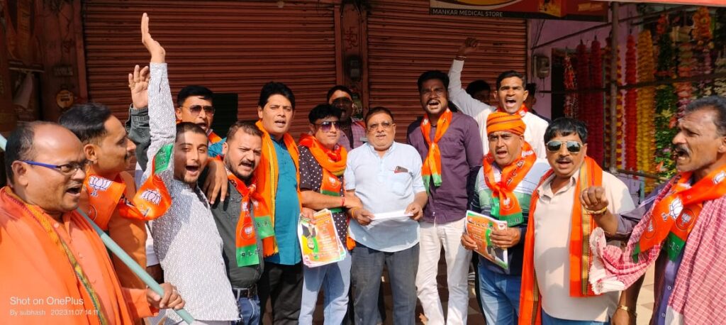 सारनी। भारतीय जनता पार्टी नगर मंडल सारनी के कार्यकर्ताओं ने पाथाखेड़ा शोभापुर के 23 वार्डो में धुआंधार प्रचार जनसंपर्क कर भारतीय जनता पार्टी के प्रत्याशी डा योगेश पंडाग्रे के पक्ष में मतदान करने की अपील की। जनसर्पक अभियान आमला -सारणी विधानसभा प्रत्याशी डॉक्टर योगेश पंडाग्रे की विधान सभा संयोजक पीजे शर्मा विधान सभा प्रभारी राजेश आहूजा नगर पालिका अध्यक्ष किशोर बरदे झुग्गी झोपड़ी प्रकोष्ठ मध्य प्रदेश के सह संयोजक रंजीत सिंह मंडल अध्यक्ष नागेन्द्र निगम नपा उपाध्यक्ष जगदीश पवार, सुधा चन्द्रा, जीपी सिह, प्रकाश शिवहरे, श्याम मदान, भीम बहादूर थापा, रेवांशकर मगरदे, वार्ड के स्थानीय वरिष्ठ नेताओं व कार्यकर्ताओं ने किया।