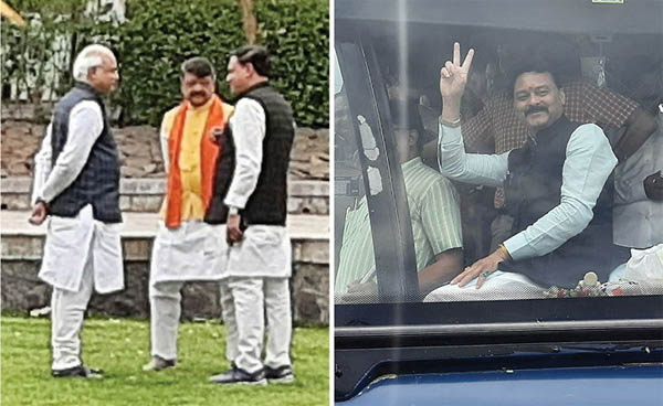 सुबह 11.30 बजे के करीब भाजपा नेताओं का ग्रेसेस रिजॉर्ट में बने शिव मंदिर में जाना शुरू हुआ। शिवराज सिंह सहित पूरे विधायक शिव मंदिर में माथा टेक रहे थे। गुरुवार रात को ही शिवराज सीहोर के हनुमान मंदिर भी पहुंचे थे, लेकिन मीडिया को इसकी सूचना नहीं दी गई थी। इसी दौरान भाजपा प्रदेश अध्यक्ष वीडी शर्मा प्रसिद्ध गणेश मंदिर पहुंचे थे। खैर हम वापस ग्रेसेस रिजॉर्ट पर आते हैं। 12.30 बजे के करीब भाजपा विधायकों का काफिला रिजॉर्ट से निकलना शुरू हुआ। शिवराज अपने चिर-परिचित अंदाज में चेहरे पर हंसी लिए बस की फ्रंट सीट पर बैठे थे और विक्ट्री साइन दिखा रहे थे। संजय पाठक ड्राइवर वाले केबिन में ही बैठे थे और हंसते हुए विक्ट्री साइन बना रहे थे। आपको याद दिला दें कि कुछ ही दिनों पहले कमलनाथ सरकार ने पाठक के रिजॉर्ट पर बुलडोजर चलवा दिया था।