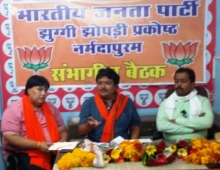 नर्मदापुराम। भारतीय जनता पार्टी झुग्गी झोपड़ी प्रकोष्ठ संभागीय बैठक भाजपा संभागीय कार्यालय में आयोजित की गई बैठक में भाजपा पितृ पुरुष पंडित दीनदयाल उपाध्याय ,श्यामा प्रसाद मुखर्जी ,कुशाभाऊ ठाकरे के छायाचित्र पर माल्यार्पण कर बैठक का शुभारंभ किया गया झुग्गी झोपड़ी प्रकोष्ठ प्रदेश संयोजक श्री अखिलेश खंडेलवाल ने बताया केंद्र की मोदी और प्रदेश की शिवराज सिंह चौहान की भाजपा सरकार समाज के अंतिम पंक्ति मैं बैठे हुए व्यक्ति को समाज की मुख्यधारा से जोड़ने के लिए अनेकों जन कल्याणकारी योजनाएं चला रही है ।बैठक में झुग्गी झोपड़ी प्रकोष्ठ के द्वारा आगामी कार्य योजनानुसार तय किया गया कि प्रत्येक सप्ताह एक दिन “संपर्क दिवस अभियान” चलाया जाएगा, अभियान के माध्यम से योजनाओं के हितग्राहियों संपर्क किया जाएगा,गठन पूर्ण कर जिला हितग्राही सम्मेलन आयोजित किया जाएगा,आत्मनिर्भर अभियान के तहत स्वरोजगार एवं शिक्षण प्रशिक्षण कार्यक्रम चलाकर लोगों को पार्टी से जोड़ा जाएगा,साल के प्रमुख उत्सव बस्तियों मे मनाए जाएंगे।