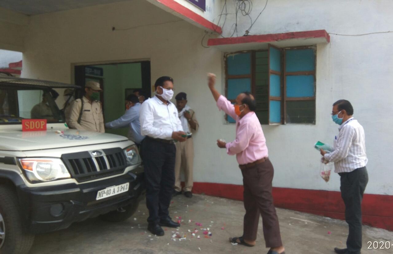 सारनी। कोरोना की लड़ाई में फ्रंट लाइन में खड़े स्वास्थ्य विभाग के डॉक्टर, मेडिकल और पैरामेडिकल स्टाफ के अलावा पुलिस का सम्मान हो रहा है। इसी क्रम में भारतीय जमदूर संघ से संबद्ध मध्यप्रदेश विद्युत उत्पादन कर्मचारी संघ शाखा सारनी के पदाधिकारियों ने मप्र पावर जनरेटिंग कंपनी के अस्पताल जाकर डॉक्टरों और स्टाफ का सम्मान किया। इसी तरह से उन्होंने एसडीओपी कार्यालय में एसडीओपी अभयराम चौधरी, स्टाफ, पुलिस थाने में टीआई महेंद्रसिंह चौहान, स्टाफ का पुष्प वर्षा कर स्वागत किया गया सम्मान किया गया। इस दौरान पदाधिकारियों में कमल जैन, एमडी मालवीय, साहेबराव पंडाग्रे, बाबुराव माथनकर, राजकुमार मालवीय, वासुदेव सारे, वीएन ठाकरे समेत अन्य लोग मौजूद थे। मास्कों का वितरण भी किया।