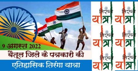 बैतूल मीडिया सेंटर सोसायटी के महासचिव एवं कार्यक्रम के सूत्रधार रामकिशोर दयाराम पंवार के अनुसार जिले के स्वतंत्रता संग्राम सेनानियों ने देश की आजादी एवं राष्ट्रीय ध्वज के मान सम्मान के लिए अपनी जान की बाजी लगा दी। देश की आजादी के 75 वें वर्ष के अवसर पर जिले भर के शहरी एवं ग्रामिण पत्रकार देश भक्ति धुन पर गीत संगीत के साथ एक दुसरे के संग – संग चलेगें। पूरे देश के साथ – साथ बैतूल जिले के पत्रकार भी अपने कार्यालय एवं निवास पर मान सम्मान एवं झण्डा संहिता का पालन करते हुए राष्ट्रीय ध्वज को लहरायेगें। 13 अगस्त 2022 सं 17 अगस्त तक चलने वाले इस कार्यक्रम में सभी पत्रकार राष्ट्रीय ध्वज के संग अपनी सेल्फी तथा अपने – अपने क्षेत्र से घर – घर झण्डा कार्यक्रम का भी कवरेज करके उसे सोशल मीडिया पर अपलोड करेगें।