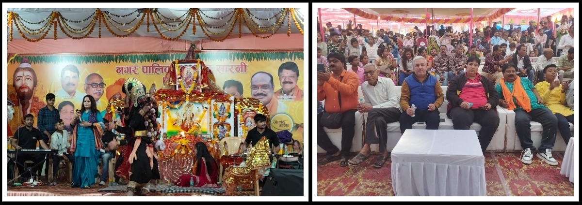 सारनी। श्री मठारदेव बाबा मेले में नगर पालिका परिषद सारनी द्वारा प्रतिवर्षानुसार इस वर्ष भी आनंद उत्सव का आयोजन किया गया। 15 से 22 जनवरी तक मेला प्रांगण में विभिन्न धार्मिक एवं सांस्कृतिक कार्यक्रम आयोजित किये जाएंगे। आनंद उत्सव के तहत सोमवार 15 जनवरी को दोपहर 1 बजे से विजायासन देवी जागरण ग्रुप सारनी की प्रस्तुति हुई।