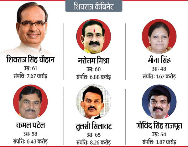 मुख्यमंत्री चौहान की शपथ के 29 दिन बाद उनके मंत्रियों को शपथ दिलाई जा रही है। फिलहाल पूर्व केंद्रीय मंत्री ज्योतिरादित्य सिंधिया के समर्थकों में सिलावट और राजपूत को ही शामिल करने का निर्णय किया गया है। भाजपा हाईकमान की हरी झंडी के बाद पांच मंत्रियों को शपथ दिलाने का निर्णय हुआ है इसमें जातीय समीकरण को साधने का प्रयास भी किया गया है। महिला और आदिवासी वर्ग का प्रतिनिधित्व मीना सिंह, ओबीसी वर्ग से कमल पटेल, अनुसूचित जाति वर्ग से सिलावट और सामान्य वर्ग से डॉक्टर नरोत्तम मिश्रा और गोविंद सिंह राजपूत को प्रतिनिधित्व दिया जा रहा है। उल्लेखनीय है कि कमलनाथ मंत्रिमंडल में सिलावट के पास स्वास्थ्य और राजपूत के पास परिवहन विभाग की कमान थी।