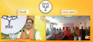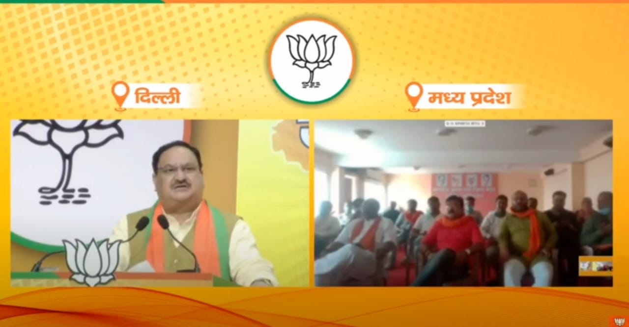 सारणी। भारतीय जनता पार्टी मंडल सारणी भाजपा कार्यालय राष्ट्रीय अध्यक्ष जेपी नड्डा द्वारा मध्य प्रदेश जन संवाद रैली का संबोधन वीडियो कॉन्फ्रेंसिंग के द्वारा किया गया। भाजपा कार्यालय में भाजपा के जिला मंत्री रंजीत सिंह मंडल अध्यक्ष सुधा चंद्रा युवा नेता बाबू सिंह की गरिमामय उपस्थिति में कार्यकर्ताओं ने राष्ट्रीय अध्यक्ष का उद्बोधन वीडियोकान्फ्रेसिगं के माध्यम से सुना गया उन्होंने अपने उद्बोधन में कहा कि प्रदेश को बधाई देना चाहता हूं कि कोराना संकट में 3 करोड़ फूड पैकेट्स, 30 लाख राशन किट और लगभग 5 करोड़ लोगों को लगभग 70 लाख लोगों को फेस कवर पहुंचाने का काम मध्य प्रदेश की इकाई ने किया।