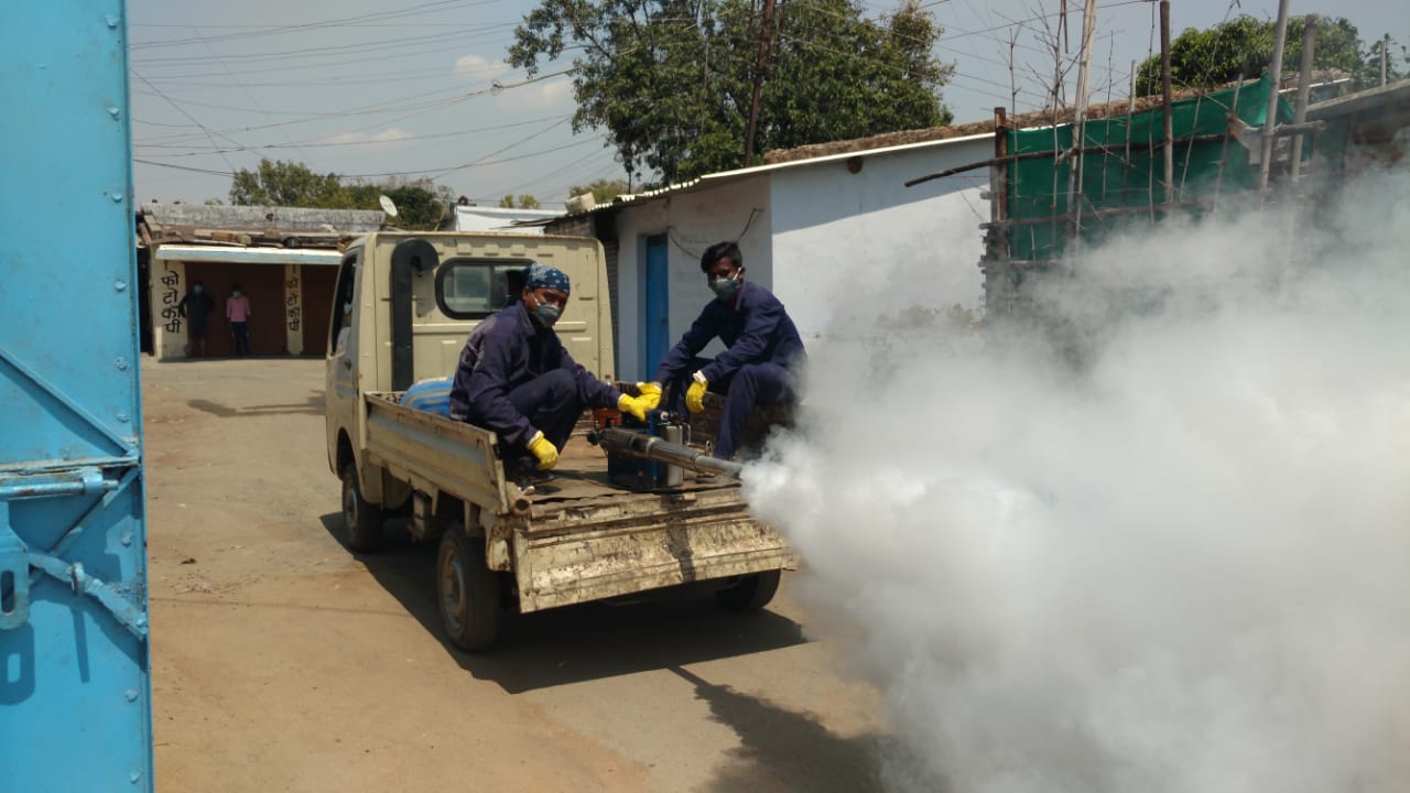 लोक डाउन के दूसरे दिन स्वांग मशीन से छिड़काव, तीसरे दिन भी बंद रहा नगर