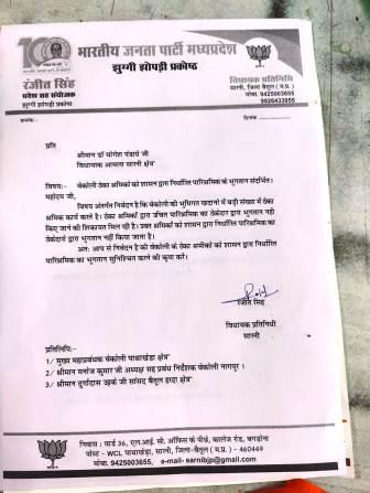 - विधायक प्रतिनिधी ने सांसद विधायक सीएमडी एवं मुख्य महाप्रबंधक को पत्र लिखकर उचित कार्रवाई करने का आग्रह किया