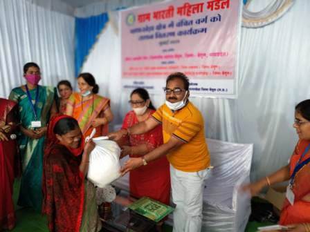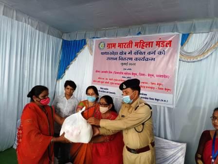 सारनी। अजीम प्रेमजी फाऊंडेशन फॉर डेवलपमेंट के सहयोग से ग्राम भारती महिला मंडल शोभापुर कॉलोनी जिला बैतूल द्वारा वैश्विक महामारी कोविड-19 ने जहां लोगों की आजीविका को प्रभावित किया वहीं दूसरी ओर आर्थिक रूप से कमजोर वर्ग के लोगों के जीवन यापन के साधनों पर भी काफी हद तक प्रभाव डाला जहां लोग स्वास्थ्य को लेकर चिंतित है वहीं दूसरी ओर जीविका चलाने के लिए लोगों की भी मदद कर रहे हैं अनाज एवं आवश्यक वस्तु के अभाव में जीवन यापन करने को मजबूर हैं कुछ समाज सेवी संगठन इस संकट काल में अपनी महत्वपूर्ण भूमिका निभा रहे हैं एक और जहां लोगों के स्वास्थ्य के प्रति सजग है दूसरी ओर उनकी राशन इत्यादि की भी जिम्मेदारी संभाल रहे हैं इसी प्रकार अजीम प्रेमजी फाऊंडेशन फॉर डेवलपमेंट द्वारा समाज के वंचित वर्ग के लिए अनाज वितरण कार्यक्रम का आयोजन ग्राम भारती महिला मंडल के माध्यम से जिलाधीश महोदय अमनबीर सिंह के मुख्य आतिथ्य में किया जाना था किंतु किसी कारणवश जिलाधीश महोदय कार्यक्रम में उपस्थित नहीं हो सके लेकिन जिलाधीश महोदय ने संस्था अध्यक्ष भारती अग्रवाल से वादा किया है कि वह संस्था ग्राम भारती महिला मंडल में जरूर आएंगे कार्यक्रम की शुरुआत सरस्वती पूजन से की गई तत्पश्चात महिलाओं ने अपने अनुभव साझा किए महिलाओं के संघर्ष की गाथा उसे लोगों का जीवन यापन की वास्तविकता से रूबरू होने का मौका मिला । महिलाओं ने आज समाज के विकास में अपना महत्वपूर्ण योगदान दिया है संस्था द्वारा 158 कीटों का वितरण दिनांक किया गया। अजीम प्रेमजी फाऊंडेशन फॉर डेवलपमेंट द्वारा 481 एवं संस्था द्वारा 44 किट इस प्रकार 525 कीट का वितरण लक्ष्य है संस्था टीमों द्वारा घर-घर जाकर जरूरतमंदों को शेष अनाज की 367 कीट वितरित किए जा रहे हैं ।कार्यक्रम में थाना प्रभारी सारणी से महेंद्र सिंह चौहान जी ने अपने कथन में कहा कि आज इस संकट काल में लोगों को आवश्यकता है समाज के कुछ वर्ग है जो इस घड़ी में सबसे अधिक प्रभावित हुए हैं आजीविका के अभाव में उनकी जीवन की मूलभूत आवश्यकताओं की पूर्ति प्रभावित हुई है संस्था का अनाज वितरण करने का अमूल्य प्रयास सराहनीय है।