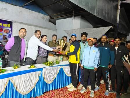 सारनी। कीटअप मे मैदान मे उतरकर जोश के साथ खेल और खिलाड़ी भावना के साथ अपने खेल से महाकाल बोरी की क्रिकेट टीम सारनी के दर्शकों का दिल तो जीतने मे कामयाब हो गई लेकिन कम रोशनी मे फाइनल खेलने उतरी यह टीम रामरख्यानी स्टेडियम मे फ़ाइनल का खिताब जीतने से दुर रह गई और 25000 हजार इनामी क्रिकेट प्रतियोगिता की उप विजेता बनने मे कामयाब रही। सोमवार को खेले गए पहले सेमीफाइनल मे शिवा इलेवन पाथाखेड़ा ने बैतूल पुलिस इलेवन को 62 रन पर रोककर आसानी से जीत प्राप्त कर फाइनल मे प्रवेश किया, तो महाकाल बोरी ने क्लासिक गोल्ड पाथाखेड़ा को हराकर फाइनल मुकाबले मे जगह बनाई समय अधिक हो जाने के चलते फाइनल निर्धारित 10 ओवर की बजाय कमेटी द्धारा महज 6,6 ओवर का कराने का निर्णय लिया करीबन 5,10 सायंकाल पर प्रारंभ हुए फाइनल मे टॉस जीतकर शिवा इलेवन पाथाखेड़ा ने 43 रन का लक्ष्य बोरी को दीया लेकिन कम रोशनी का खामियाजा महाकाल बोरी को भुगतना पड़ा जिसके चलते खिलाड़ी लगातार आउट होते गए और शिवा इलेवन पाथाखेड़ा बाबा मठारदेव क्रिकेट प्रतियोगिता का खिताब जीत 25000 की नकद इनामी राशि व ट्रॉफी पर कब्जा करने मे कामयाब रही,महाकल बोरी को उपविजेता के रुप मे 10000 हजार नकद और ट्रॉफी मठारदेव क्रिकेट समिति द्धारा प्रदान की गई। उपस्थित अतिथियों ने टीमों व खिलाडियों को पुरुष्कार प्रदान किए। बड़ी संख्या मे दर्शकों ने फाइनल मुकाबले का आनद लिया।