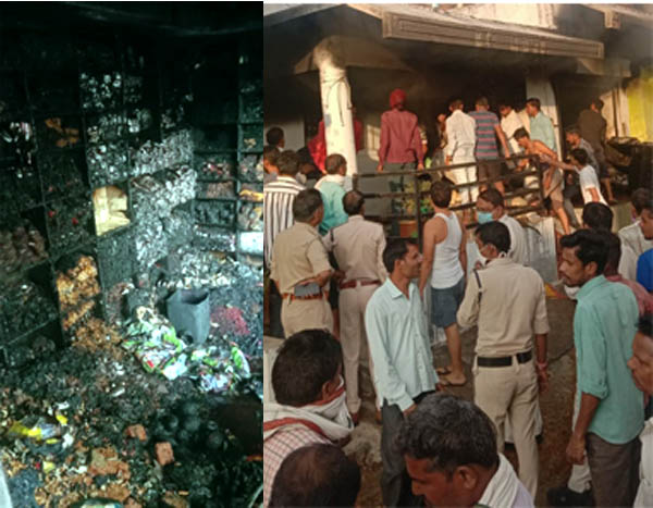 शॉर्ट सर्किट से किराना दुकान सहित मकान में लगी आग से 8 से 10 लाख का नुकसान