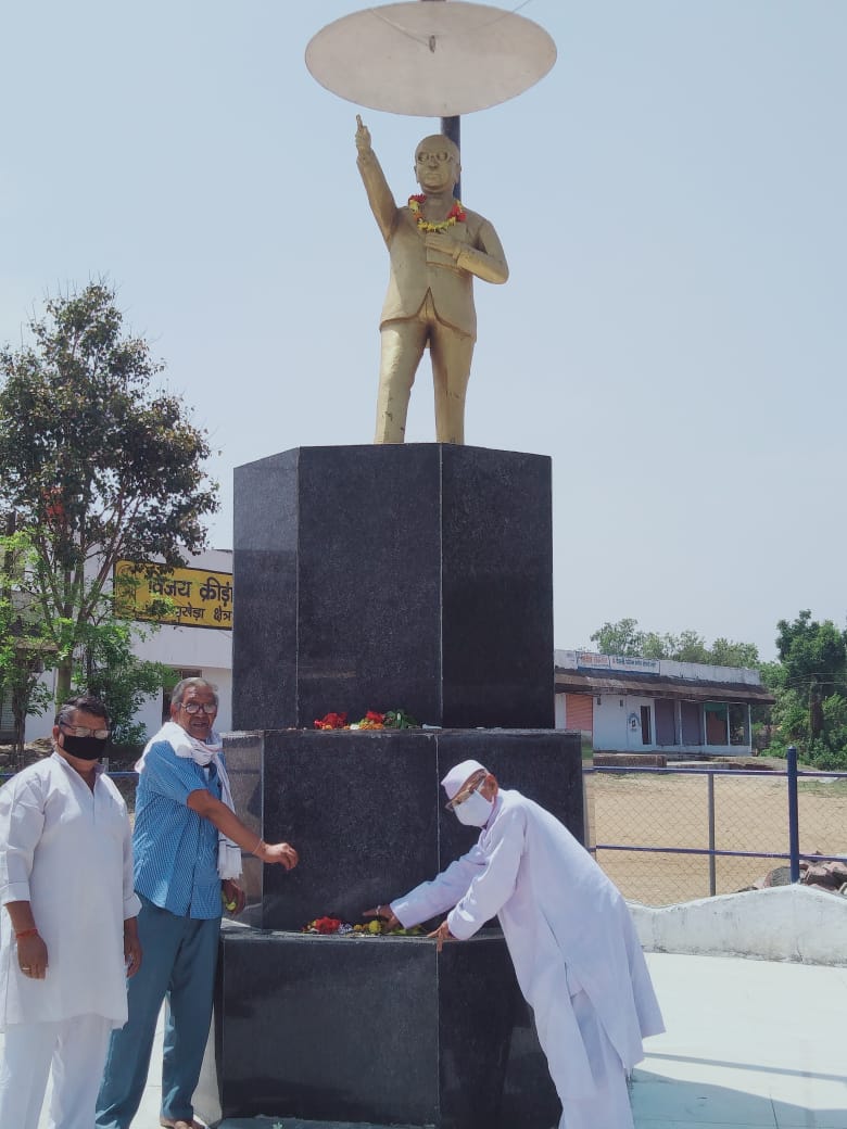 सारनी। संविधान निर्माता बाबा साहेब भीमराव अम्बेडकर जी के 129वें वर्ष पर सारनी क्षेत्र में कई लोगो ने लॉक डाउन के कारण अपने-अपने घर पर रहकर पुष्पांजलि अर्पित की। वही कई लोगो ने सोशल डिस्टेंसिग एवं लॉक डाउन, धारा 144 का पालन करते हुए बाबा साहब की प्रतिमा को साफ कर उन्हें पुष्पांजलि अर्पित की। जिसमें भारतीय कम्युनिस्ट पार्टी ने मंगलवार को सुबह 11 बजे भारत के संविधान निर्माता डॉ भीमराव आंबेडकर जी के 129वे वर्ष पर बस स्टैंड पाथाखेड़ा में स्थापित मूर्ति पर जिला भारतीय कम्युनिस्ट पार्टी के सचिव रामा वाईकर, पिरथी बारपेटे, स्वतंत्रता संग्राम सेनानी डॉ कृष्णा मोदी एवं पंकज मोदी ने पुष्पांजलि अर्पित की। श्री मोदी जी ने कहा कि आज जो देश के अंदर विकास एवं एकता का निर्माण हुआ है व उनके द्वारा रचिता संविधान आधार पर ही हुआ है। अंत में मोदी ने कहा है कि संविधान की रक्षा हेतु सभी को भविष्य में कायम रहे इसकी रक्षा हेतु सभी को तैयार रहना चाहिए। वही सारनी नगरीय निकाय के वार्ड क्रमांक 20 के पार्षद संदीप झपाटे ने बाबा साहेब अंबेडकर जी की जयंती राष्ट्रीय एवं प्रदेश के पदाधिकारियों के निर्देशानुसार घर पर रहकर मनाई। श्री झपाटे ने बताया कि भारत के संविधान रचिता आदरणीय डॉक्टर भीमराव अंबेडकर जी की जन्म जयंती पर भाजपा कार्यकर्ताओं ने उनके द्वारा अपने घरों में उनके छायाचित्र पर माल्या माल्यार्पण एवं दीप प्रज्वलित किया गया। साथ ही कर्मवीरों को सम्मानित भी किया गया।
