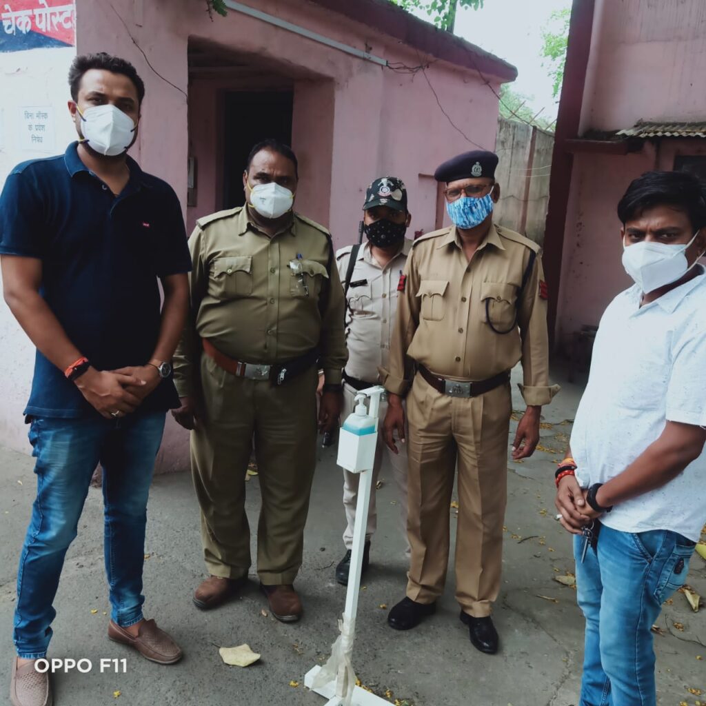 सरकारी संस्थाओं में क्षेत्र के युवाओं ने भेट की सेनेटाईजर स्टैंड