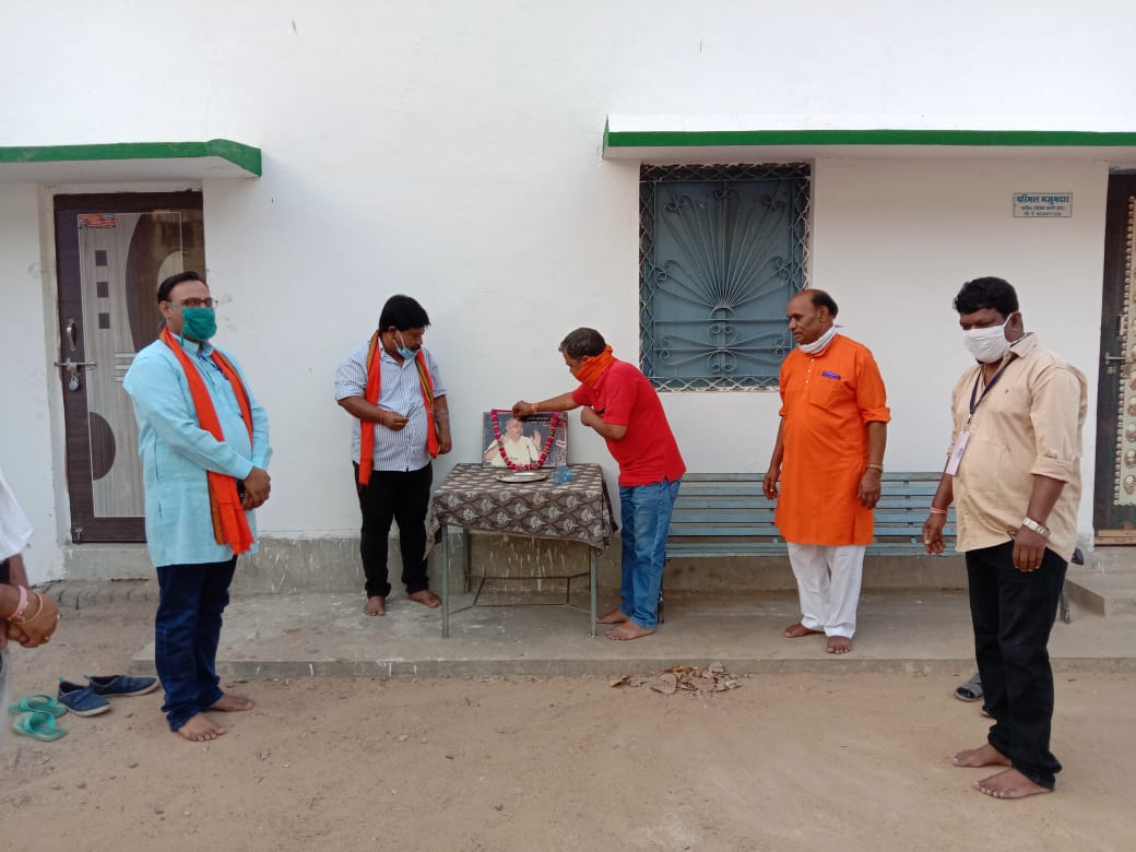 सारनी। भारतीय जनता पार्टी के पित्र पुरुष एवं जिले के वरिष्ठ नेता पूर्व सांसद स्वर्गीय विजय कुमार खंडेलवाल जी की जयंती को शोभापुर सैक्टर कार्यकर्ताओं ने मनाई इस और पर वरिष्ट भाजपा नेता जगन्नाथ डैहरीया मंडल अध्यक्ष सुधा चन्द्रा शोभापुर सेक्टर प्रभारी प्रकाश शिवहरे जगदीश पवार समीर मसीद उपस्थित थे उपस्थित नेताओं ने स्वास्थ्य विभाग द्वारा जारी दिशा निर्देशों का पालन करते हुए स्वर्गीय श्री विजय कुमार खंडेलवाल की जयंती मनाई इस अवसर पर भाजपा के अनुसूचित जाति नेता जगन्नाथ डैहरीया है कहा कि बाबू जी एक ऐसे नेता थे जिन्होंने सर्व समाज को साथ में रखकर काम किया समाज के अंतिम व्यक्ति तक शासन की योजनाओं को पहुंचाने के लिए वह हमेशा प्रयासरत है। कार्यकर्ताओं में उत्साह भरने एवं जनहित के कार्य करने के लिए वे सदैव प्रेरित करते थे उनके द्वारा जिले में लगाया गया पौधा आज भारतीय जनता पार्टी के रूप में वट वृक्ष का रूप उनके विचारों से प्रेरणा लेकर आज हजारों कार्यकर्ता शासन की योजनाओं का लाभ समाज के अंतिम पंक्ति पर खड़े व्यक्तियों तक पहुंचाने का काम कर रहे हैं ।