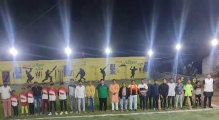 सारनी। स्वर्गीय विजय कुमार खंडेलवाल प्लास्टिक बालॅ नाईट टूर्नामेंट का शुभारंभ नगर पालिका अध्यक्ष किशोर बरदे,विधायक प्रतिनिधि रंजीत सिंह, नगरपालिका उपाध्यक्ष जगदीश पवार, सभापति गणेश मस्की, जीपी सिंह,विक्की सिंह, पप्पू मानकर,दिलीप विश्वकर्मा, योगेश बर्ड़े , मुकेश जयसवाल, की उपस्थिति में शुभारंभ हुआ। नगर पालिका अध्यक्ष किशोर बरदे विधायक प्रतिनिधि रंजीत सिंह आयोजन समिति को प्लास्टिक बॉल क्रिकेट प्रतियोगिता शुभारंभ पर ढेर सारी शुभकामनाएं देते हुए कहा की कोयला चल क्षेत्र पाथाखेड़ा मे खिलाड़ियों को प्रोतसाह न देने के लिए आयोजन समिति पिछले 3 वर्षों से यह प्रतियोगिता कराती हुई आ रही है और यह दिन प्रतिदिन आयोजन भव्य रूप में किया जा रहा है इसके लिए आयोजन समिति बधाई के पात्र है ।आज दो मैच खेले गये जिससे पहले मैच मे सिद्दू मुसेवाला 7 ने सुपर 7 को हराया पहले बैटिंग करते हुवे सुपर 7 ने 27 रन 6 ओवर में बनाये। टारगेट का पीछा करने उतरी सिद्दू मुसेवाला 7 ने 3 ओवर में 1 विकेट खो कर मुकबला जीत लिया मैन ऑफ द मैच गुल्लू को दिया गया। दूसरा मैच में द रॉक फिटनेस 7 ने सोनू सोनी 7 को हराया पहले बैटिंग करते हुवे द रॉक फिटनेस 7 ने 6 ओवर में 58 रन वनाये जिसमे तुषार सिंह ने शानदार 38 रन बनाये। 59 रन का पीछा करने उतरी सोनू सोनी 7 टीम 36 रन ही बना सकी और आल आउट हो गयी 22 रन हार कर प्रतियोगिता से बाहर हो गयी। इस मैच के मैन ऑफ द मैच तुषार सिंह रहे । पुरुस्कार आज अतिथि गणेश मस्की,पार्षद जफ़र अंसारी ने आज के मैन द मैच खिलाड़ियों को पुरस्कार प्रदान किया।