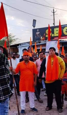 विश्व हिंदू परिषद,बजरंग दल और भाजपा के कार्यकर्ताओं के संयुक्त तत्वधान में हनुमान जयंती के पावन अवसर पर जो भव्य शोभायात्रा निकाली गई उसमें कोई अप्रिय घटना ना हो इसे देखते हुए शाहपुर एसडीएम अनिल सोनी, घोड़ाडोंगरी तहसीलदार अशोक डेहरिया,सारनी एसडीओपी रोशन कुमार जैन,सारनी थाना प्रभारी रत्नाकर हिगवे, पाथाखेड़ा चौकी प्रभारी सदीप परते सहित बड़ी संख्या में पुलिस बल सहित मध्यप्रदेश शस्त्र पुलिस के जवान शोभायात्रा में शामिल रहे हालांकि शांतिपूर्ण तरीके से शोभायात्रा का आयोजन किया गया।