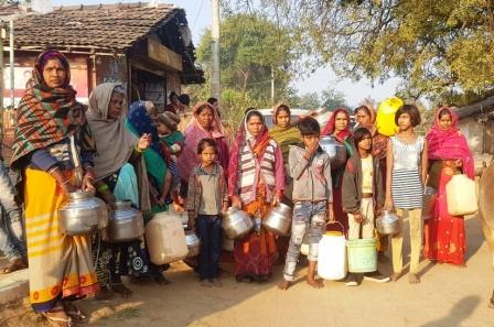 कहार मोहल्ले के ग्रामिणो ने खाली बर्तन लेकर प्रदर्शन किया