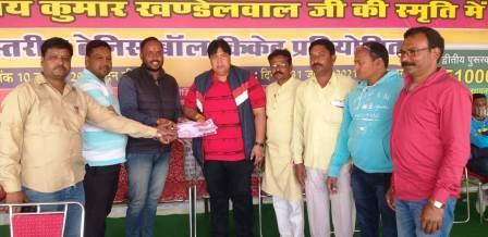 राज्यस्तरीय क्रिकेट प्रतियोगिता मे मंदिर निर्माण हेतु आयोजन समिति, खिलाड़ी व दर्शको ने प्रदान की सहयोग राशि