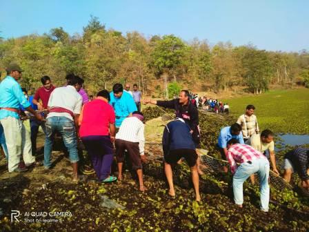 चौथे सप्ताह भी चला सतपुड़ा डेम से चाइनीस झालर साफ करने का अभियान, स्कूली छात्र छात्राओं ने किया श्रमदान