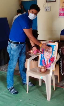 भाजपा कार्यकर्ताओं ने घर पर बनाई बाबा साहेब भीमराव अंबेडकर की जयंती
