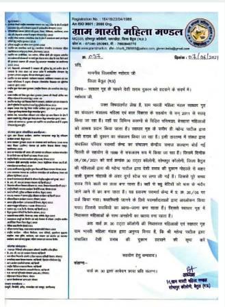 वार्ड क्रमांक 30 में शराब दुकान बंद कराने को लेकर ग्राम भारती महिला मंडल ने कलेक्टर को लिखा पत्र