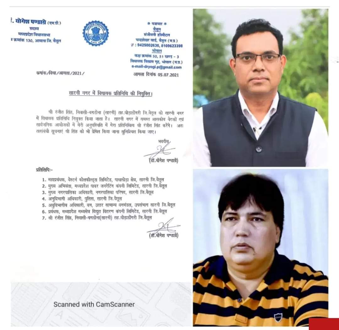 विधायक डॉ योगेश पंडाग्रे द्वारा जुझारू नेता रंजीत सिंह को सारणी नगर पालिका क्षेत्र में अपना विधायक प्रतिनिधि नियुक्त किया