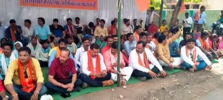 वेकोलि प्रबंधन के खिलाफ धरने पर बैठे भाजपा एवं बीएमएस कार्यकर्ता