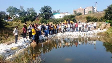 माचना नदी पर बनाया 1500 बोरियों का बोरी बंधान