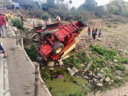 नदी में गिरा हार्वेस्टर, दबने से आपरेटर की दर्दनाक मौत, तीन गंभीर रूप से घायल
