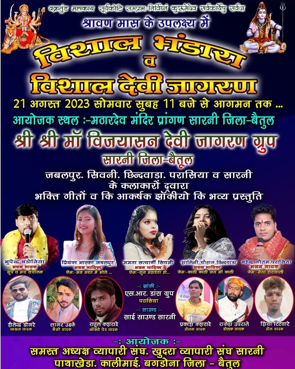 आज शहर में कावड़ यात्रा, देवी जागरण और विशाल भंडारा का भव्य आयोजन