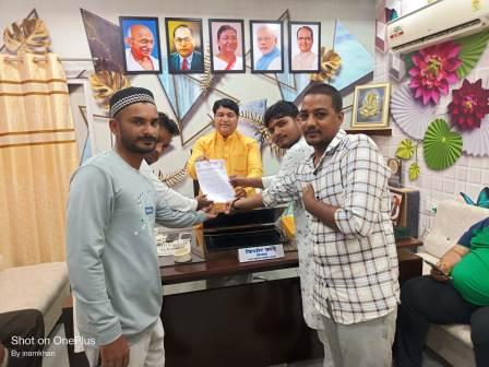 पेविंग ब्लैक लगाने अल्पसंख्यक विभाग ने मुख्य नगर पालिका अधिकारी के नाम नपाध्यक्ष को सौपा ज्ञापन