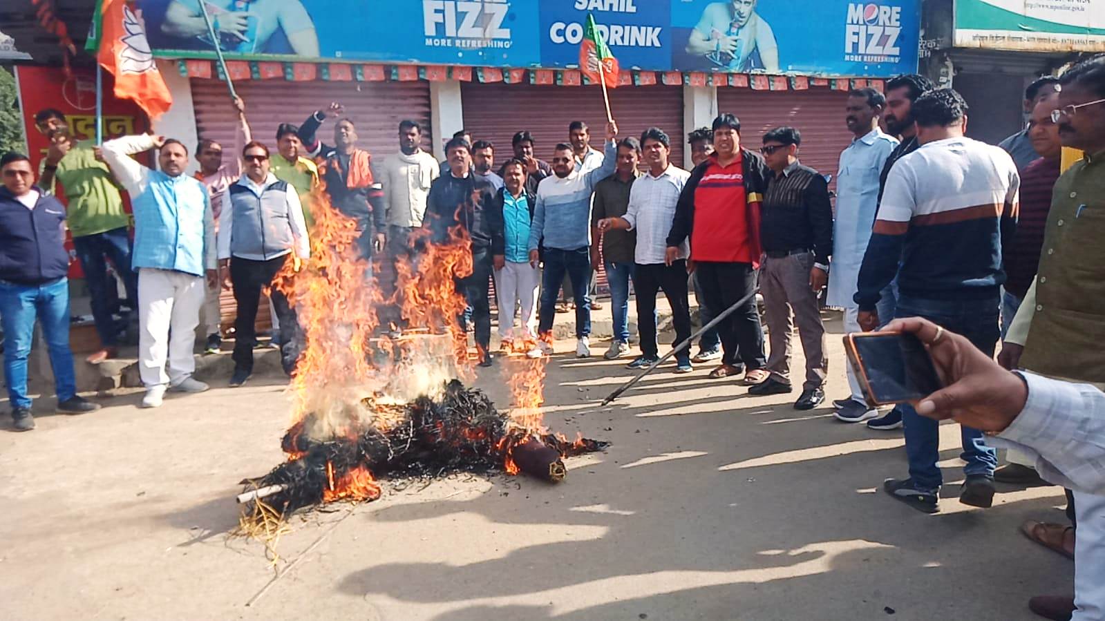 भाजपाईयों ने फूंका टीएमसी सांसद का पुतला